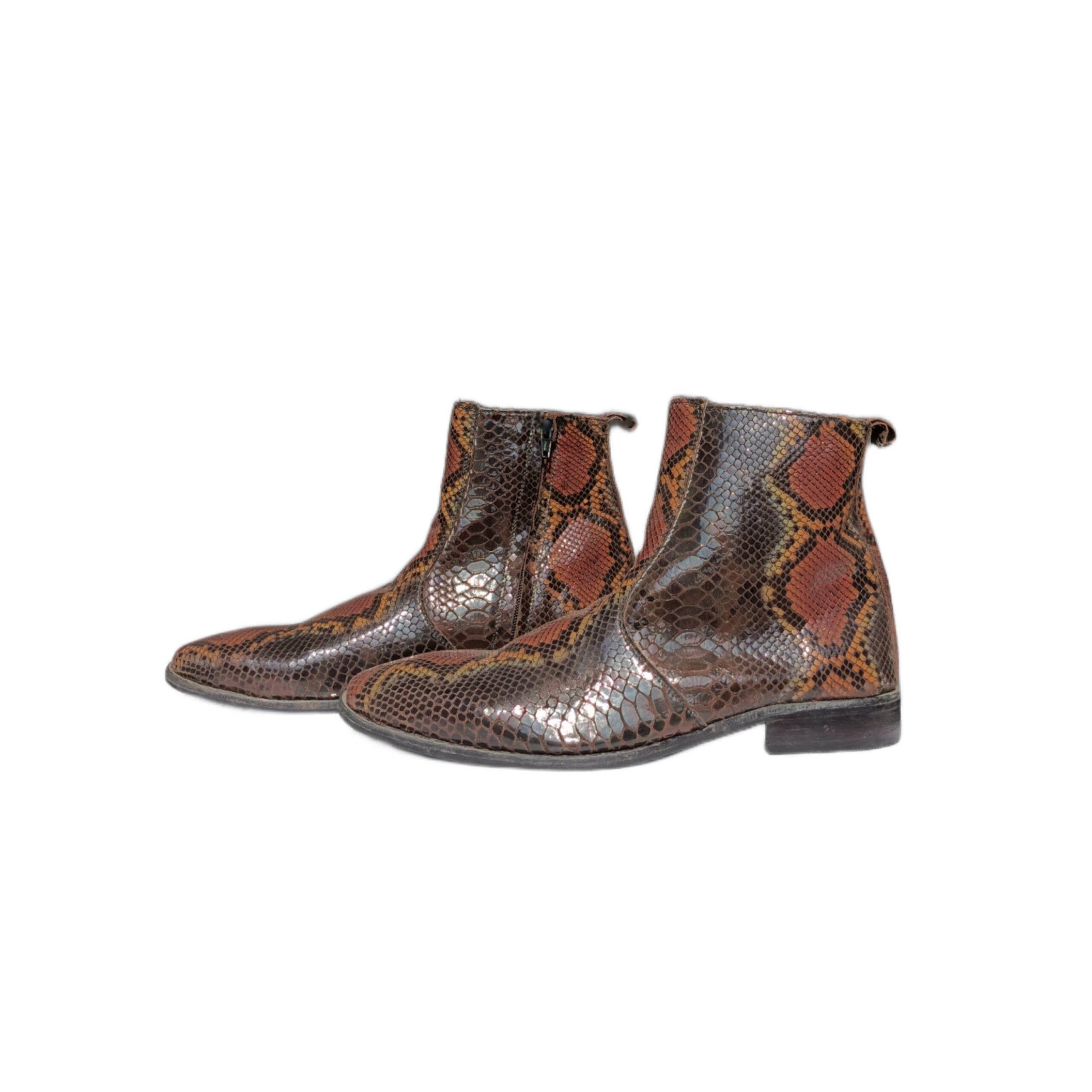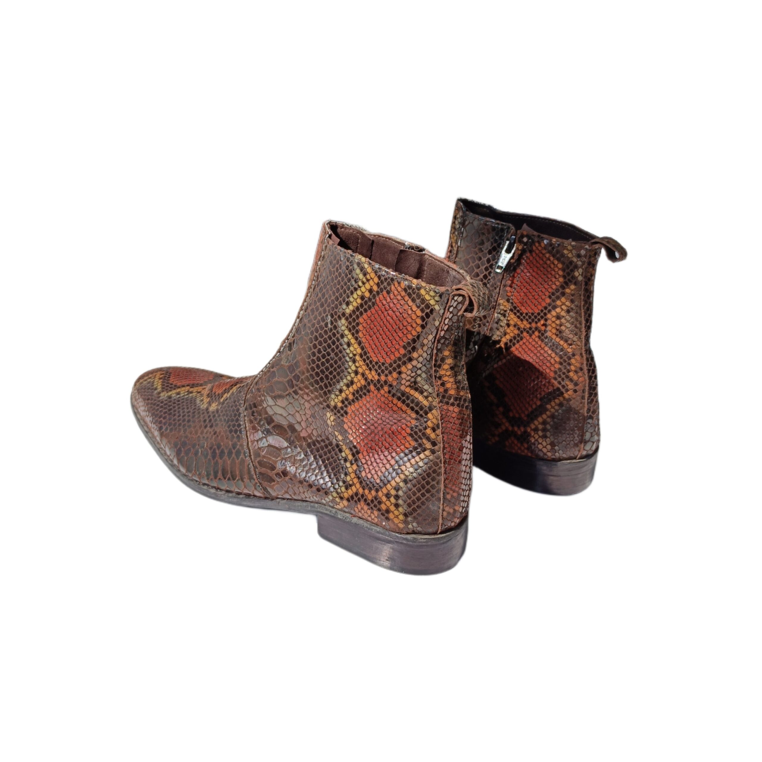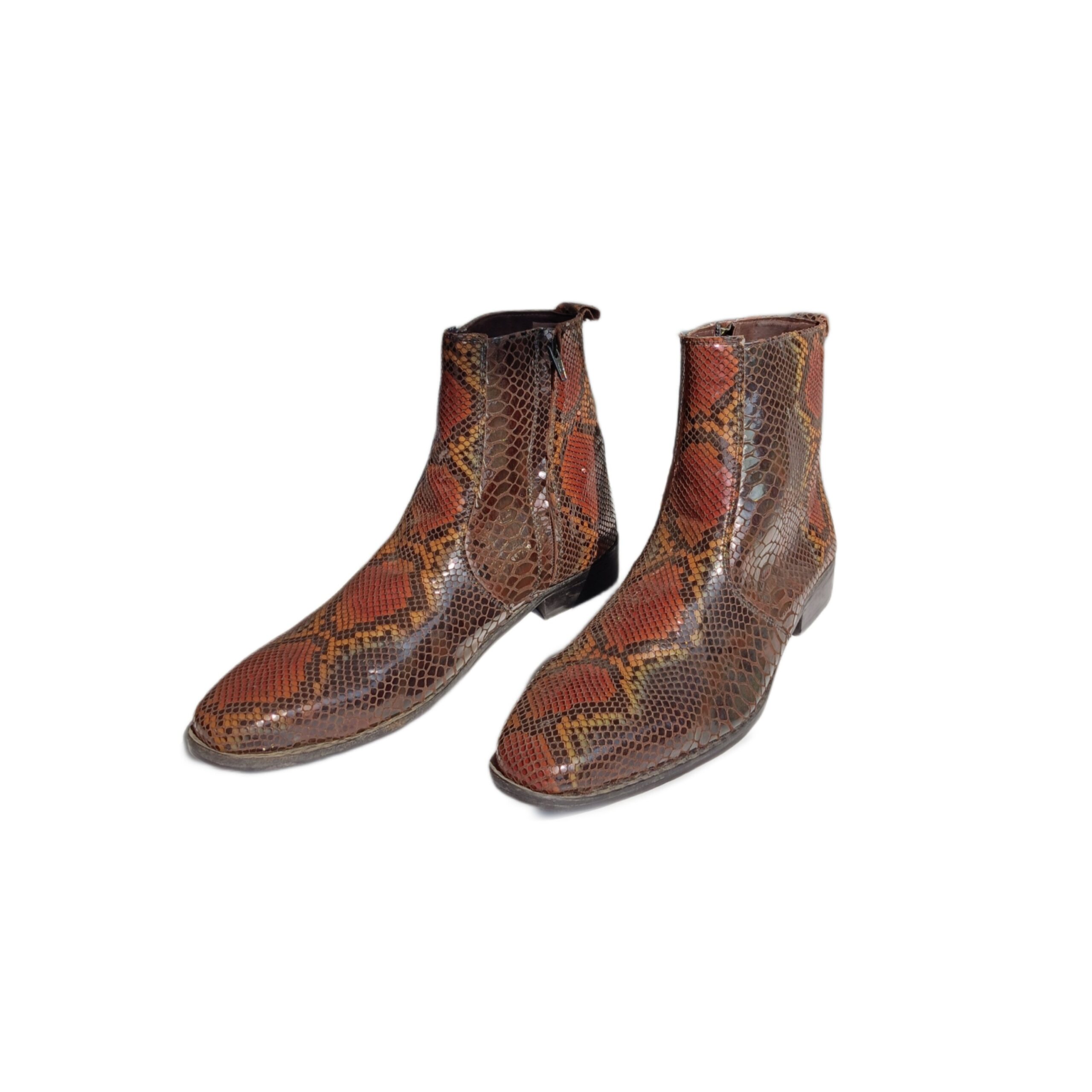 Premium snake-texture leather ankle boots crafted with a sleek silhouette and durable sole. Bold, stylish boots perfect for statement looks and everyday wear.