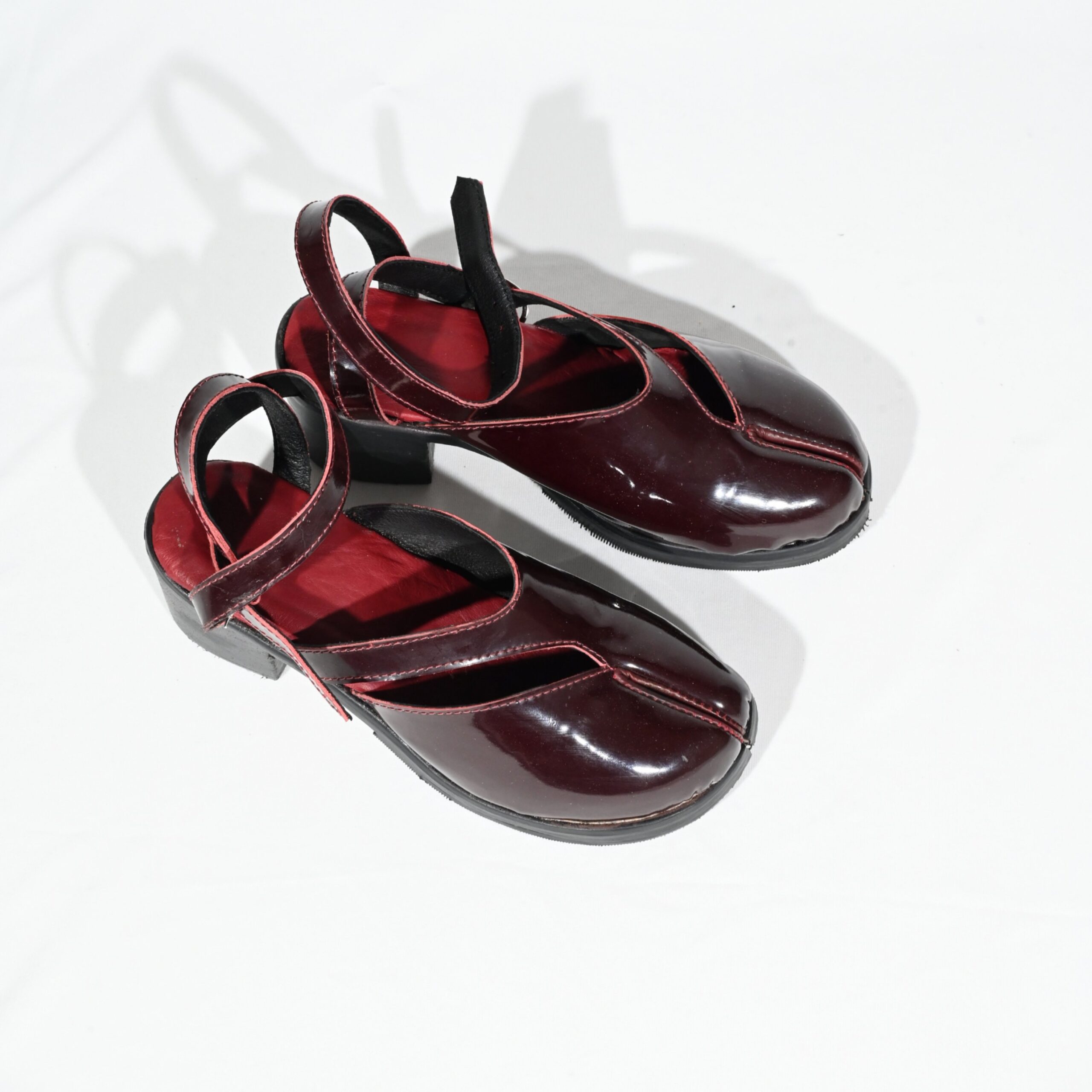 Redefine bold elegance with these Burgundy Patent Genuine Leather Tabi Sandals, designed with the iconic split toe (tabi) silhouette. Crafted from premium genuine leather with a glossy patent finish, these sandals offer a striking balance of tradition-inspired design and modern style.